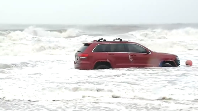 Car stuck in Atlantic Ocean in Myrtle Beach as Dorian hits